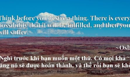 Bạn khao khát một người, bạn ham muốn một người. Tại sao? Vì bạn cảm thấy đơn độc. Trong bản thân bạn, bạn cảm thấy không đủ. Có một loại trống rỗng trong bạn mà bạn muốn được lấp đầy bởi sự hiện diện của người khác. Bạn cảm thấy vô nghĩa và bạn muốn người khác truyền nghĩa cho cuộc sống của bạn. Điều đó không bao giờ xảy ra; nó chỉ là khao khát và hi vọng. Nó không bao giờ được đáp ứng – nó không thể được đáp ứng theo chính bản chất của mọi thứ. Nó là không thể được vì người khác đang ham muốn bạn với cùng lí do; người đó cũng cảm thấy trống rỗng. Bây giờ hai người trống rỗng đang hi vọng được đáp ứng qua nhau: hai cuộc sống vô nghĩa đang hi vọng từ nhau để trở thành có nghĩa và có ý nghĩa.