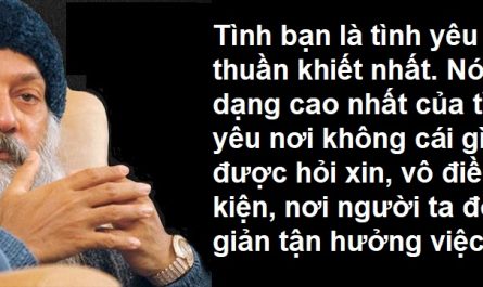 Hiển nhiên bạn sẽ đè nén dục – vì bạn gọi nó là bẩn thỉu, bạn gọi nó là không thuần khiết. Bạn nghĩ rằng khi bạn đã đi ra ngoài nó thế thì bạn sẽ là thuần khiết. Bạn là thuần khiết. Tôi tuyên bố bạn thuần khiết. Như bạn vậy, bạn là hoàn hảo. Từ hoàn hảo tới hoàn hảo hơn… cuộc hành trình này không phải là từ không hoàn hảo tới hoàn hảo, cuộc hành trình này là từ hoàn hảo tới hoàn hảo hơn. Cuộc hành trình này không là từ Quỉ tới Thượng đế, cuộc hành trình này là từ Thượng đế tới Thượng đế hơn. Bạn là hoàn hảo, bạn là thiêng liêng, bạn là thuần khiết.