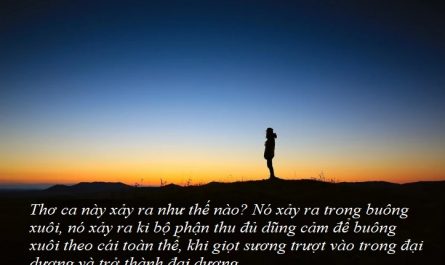 Quan sát điều đó: bất kì khi nào ai đó yêu bạn, chính hiện tượng yêu là đủ. Lạnh của bạn biến mất, bạn bắt đầu ấm lên. Tim bạn không còn dửng dưng hướng tới thế giới. Bạn nhìn hoa nhiều hơn, bạn nhìn trời nhiều hơn – trời có thông điệp… vì người đàn bà đã nhìn vào trong mắt bạn, hay người đàn ông đã nhìn vào trong mắt bạn, và đã chấp nhận bạn một cách hoàn toàn, không có mong đợi gì.
