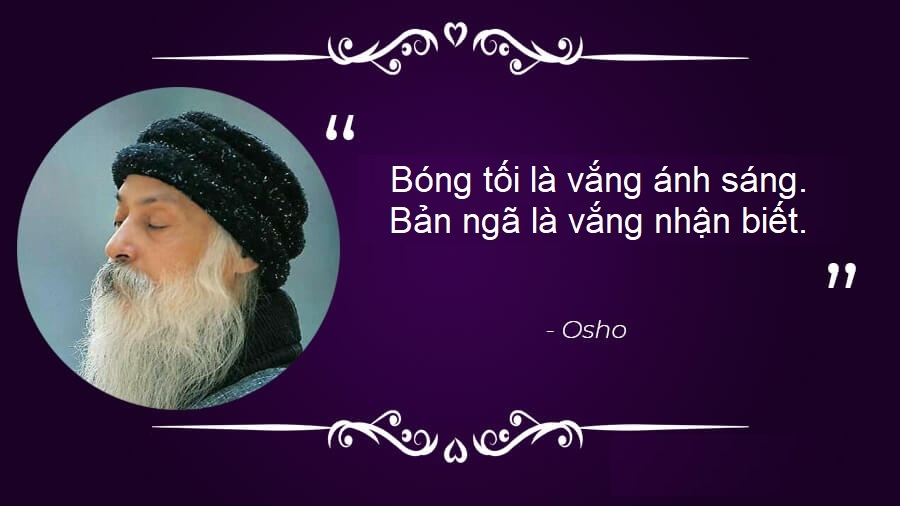 Cuộc hành trình bên ngoài cần bản ngã, cuộc hành trình bên trong cần vô ngã. Khi bạn tranh đấu, bản ngã được cần. Người lính cần bản ngã, nhưng thánh nhân cần vô ngã. Và sự sống không phải toàn là tranh đấu. Nếu sự sống toàn là tranh đấu, thế thì nó là vô nghĩa. Có những khoảnh khắc vui mà không tới qua tranh đấu, cái tới qua thảnh thơi. Bản ngã không bao giờ cho phép bạn thảnh thơi; nó giữ bạn liên tục căng thẳng. Do đó căng thẳng phá huỷ bạn — thân thể, tâm trí, mọi thứ bị phá huỷ bởi căng thẳng và dồn nén.