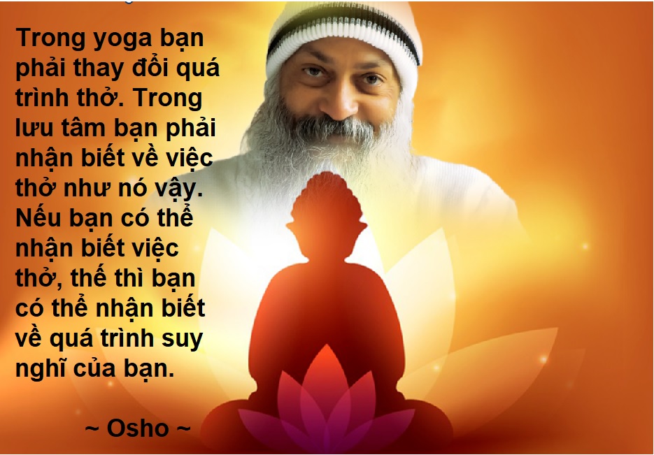 Lưu tâm tới việc thở đi. Trong yoga, bạn phải thay đổi quá trình thở. Trong lưu tâm, bạn phải nhận biết về việc thở như nó vậy. Chỉ là nhận biết về nó. Nếu bạn có thể trở nên nhận biết về việc thở của bạn, thế thì bạn có thể trở nên nhận biết về quá trình ý nghĩ của bạn; bằng không thì không đâu.
