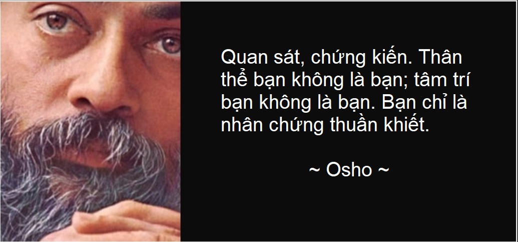 Và sannyasin này trả lời, “Chặt đi! Và cũng như ông sẽ thấy rằng ông đã chặt cái đầu khỏi thân thể. Ta cũng sẽ thấy điều đó, ta cũng sẽ quan sát điều này xảy ra. Nhưng ông sẽ không có khả năng giết ta, vì ta là người quan sát.” Và ông ấy tiếp tục, “Ta cũng sẽ thấy rằng cái đầu đã bị chặt ra – cho nên đừng bị cảm giác sai rằng ông có thể làm tổn thương ta theo cách nào đó. Ta ở bên ngoài điểm mà bất kì người nào có thể làm tổn thương ta.”
