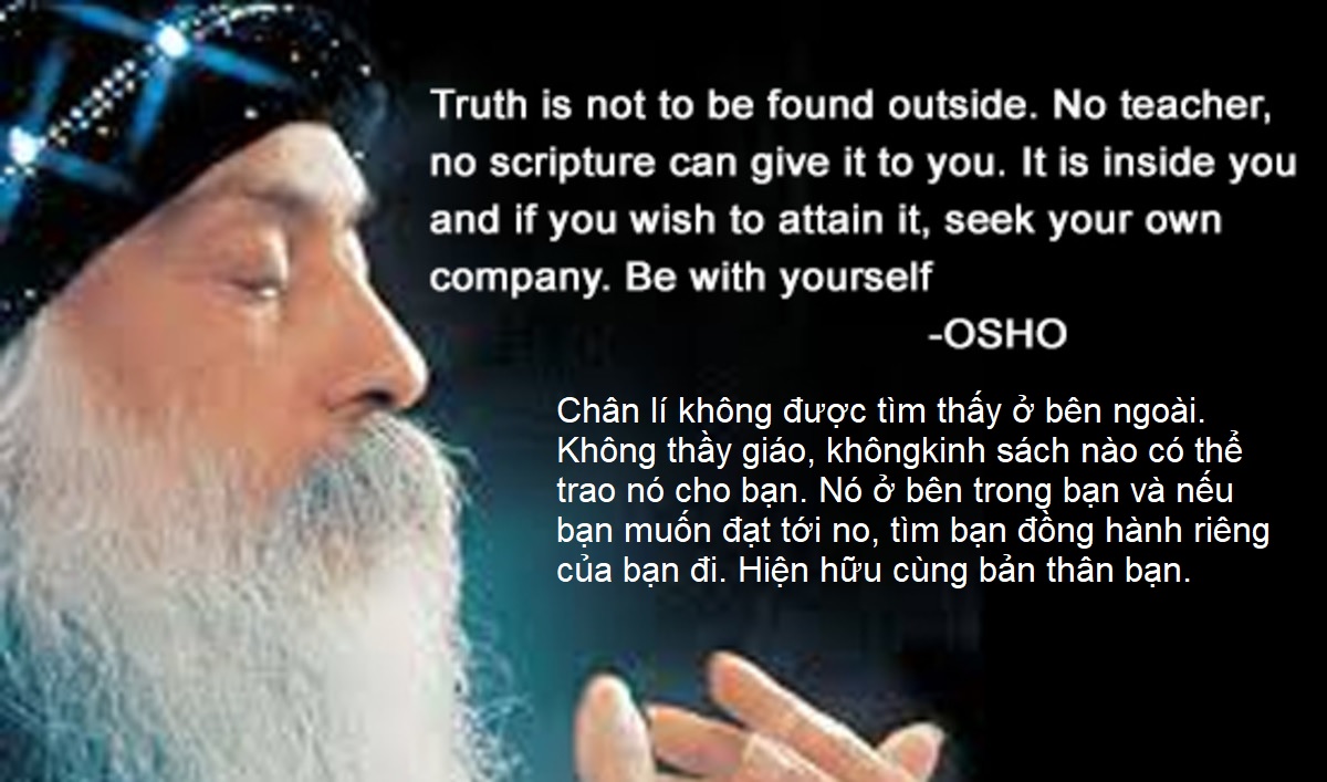 Cho nên đây là lí do tại sao tôi sẽ không nói cho bạn chân lí là gì. Không phải vì tôi muốn giữ lại cái gì đó với bạn, nhưng bởi vì nó không thể được nói. Trong các thời đại quá khứ, trong thời đại của Upanishads, bất kì khi nào chuyện xảy ra là ai đó sẽ đi tới hiền nhân và hỏi, “Chân lí là gì?” hiền nhân sẽ tỏ ra nghiêm khắc với người này.
