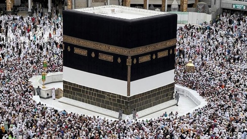 Chỗ hành hương cho người Hồi giáo là Kaaba. Mãi cho tới thời của Mohammed, đã có ba trăm sáu mươi nhăm tượng ở Kaaba – các tượng khác nhau cho từng ngày trong năm. Tất cả các tượng này đã bị bỏ đi hay bị phá huỷ, nhưng tảng đá trung tâm mà đã là trung tâm của đền thì không bị bỏ đi. Kaaba là cổ đại hơn tôn giáo của Hồi giáo. Lịch sử của Hồi giáo mới chỉ quãng một nghìn bốn trăm năm, nhưng tảng đá đen đó ở Kaaba có hàng trăm nghìn năm tuổi.