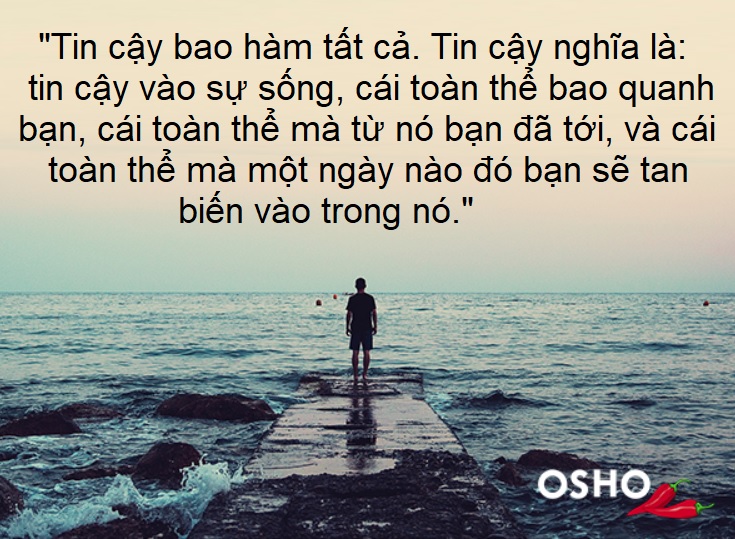 Tôi không nói tin, tôi đang nói tin cậy. Hoài nghi là món quà tự nhiên; nó phải là từ Thượng đế – nó có thể ở chỗ nào khác được? Bạn mang hoài nghi đi cùng bạn: tin cậy vào nó, tin cậy vào việc đặt câu hỏi của bạn. Và đừng vội vàng nhồi nhét và che giấu nó bằng những niềm tin vay mượn từ bên ngoài – từ bố mẹ, từ tu sĩ, từ chính khách, từ xã hội, nhà thờ. Hoài nghi của bạn là cái gì đó đẹp vì nó là của bạn; nó là cái gì đó đẹp vì nó là đích thực. Từ hoài nghi đích thực này một ngày nào đó sẽ mọc ra hoa của tin cậy đích thực. Nó sẽ là việc trưởng thành bên trong, nó sẽ không là áp đặt từ bên ngoài.