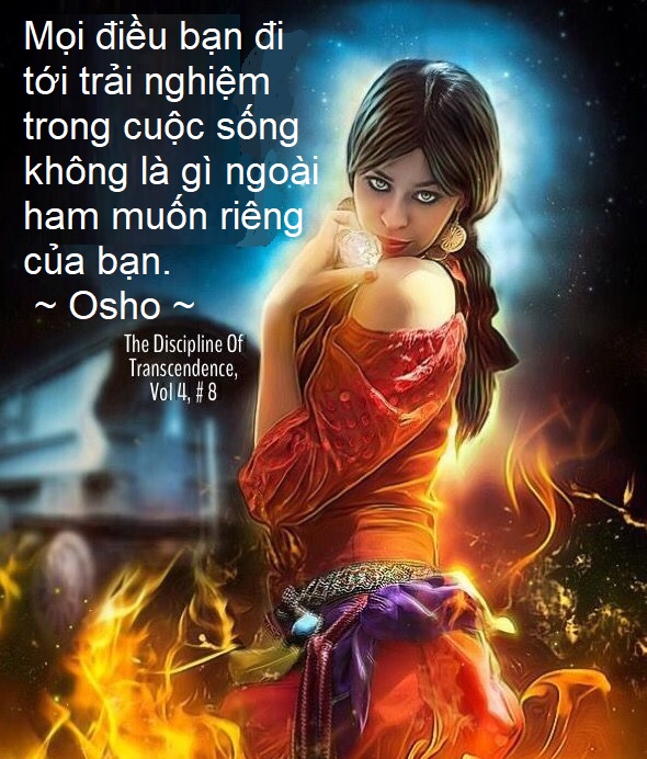 Ham muốn phải được làm thuần khiết và được biến đổi, vì nó là năng lượng của bạn – bạn không có bất kì năng lượng nào khác. Làm sao biến đổi ham muốn? Một cách, cách bình thường, cách tầm thường, là đổi đối thể. Không đi theo tiền, bắt đầu đi theo Thượng đế. Bạn bị thất vọng với tiền – trở thành có tính tôn giáo, đi nhà thờ, tới đền chùa, tới nhà thờ hồi giáo. Để ham muốn của bạn có đối thể mới mang tên Thượng đế, cái là ảo tưởng như đối thể có tên là tiền, thậm chí còn ảo tưởng hơn, vì bạn biết gì về Thượng đế? Tiền ít nhất là cái gì đó hữu hình, đối thể; bạn đã biết nó, bạn đã thấy nó. Bạn biết gì về Thượng đế? Bạn chỉ nghe nói từ này. Thượng đế vẫn còn là một từ chừng nào chưa được trải nghiệm. Thượng đế vẫn còn là từ trống rỗng chừng nào bạn chưa rót nội dung nào đó vào nó qua kinh nghiệm tồn tại riêng của bạn.