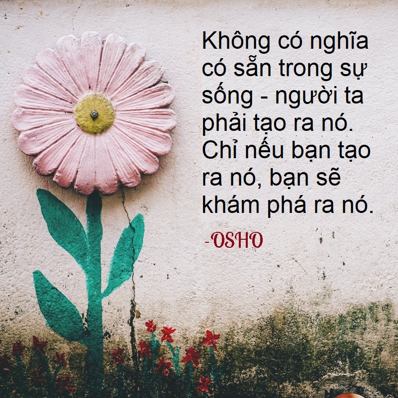 Cuộc sống trong bản thân nó là không có nghĩa. Nó có nghĩa chỉ nếu bạn có thể hát bài ca của vĩnh hằng, nếu bạn có thể toả ra hương thơm nào đó của điều thiêng liêng, của tính Thượng đế, nếu bạn có thể trở thành hoa sen – bất tử, vô thời gian. Nếu bạn có thể trở thành yêu thuần khiết, nếu bạn có thể làm đẹp sự tồn tại này, nếu bạn có thể trở thành phúc lành cho sự tồn tại này, chỉ thế thì cuộc sống có ý nghĩa; bằng không nó là vô nghĩa. Nó giống như vải vẽ trống rỗng: bạn có thể liên tục mang nó cả đời bạn và bạn có thể chết dưới trọng lượng của nó, nhưng giá trị là gì? Vẽ cái gì đó lên nó đi!