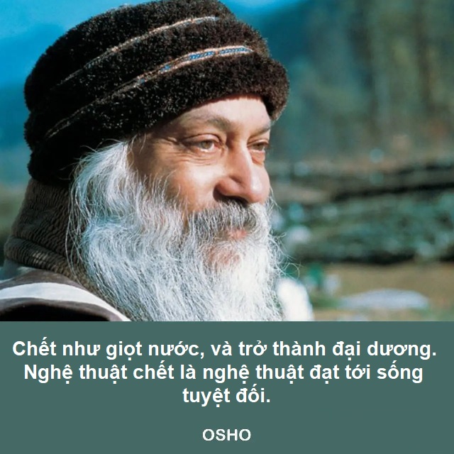 Chết là vấn đề được tạo ra. Cố hiểu nó đi. Vì bạn không cho phép quá khứ chết đi, nó liên tục được tích luỹ, nó trở thành gánh nặng lên bạn, nó là tải trọng chết. Nếu bạn cho phép quá khứ chết đi từng khoảnh khắc khi thời gian trôi qua, nếu bạn kết thúc với nó, thế thì từng khoảnh khắc bạn lại được sinh ra và bạn không tích luỹ quá khứ chết. Thế thì bạn không tích luỹ chết và do đó không có vấn đề để xử trí, không có vấn đề để giải quyết. Từng khoảnh khắc bạn trở thành tươi tắn – và bạn biết rằng tươi tắn này là vĩnh hằng, vô thời gian. Ngay cả khi cái gọi là chết sẽ xảy ra, bạn sẽ không chết. Trong khoảnh khắc đó sống đã trở thành quá khứ, cho nên bạn không bám vào nó. Bạn đã học một điều trong sống – không bám víu. Cho nên bạn không bám vào nó và vấn đề không nảy sinh. Nếu bạn bám vào sống, có sợ chết. Việc bám vào sống tạo ra vấn đề.