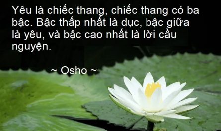 Hai điều phải được làm để đi ra ngoài tâm trí. Thứ nhất, đi vào trong thiền, và thế rồi chạm tới mức độ của vô trí bên trong bạn. Thế thì bạn sẽ có yêu mà sẽ không bất kì cái đối lập cực nào. Nhưng thế thì trong yêu đó sẽ không có háo hức, không có đam mê. Yêu đó sẽ là im lặng – an bình sâu mà thậm chí không một gợn sóng trên nó.
