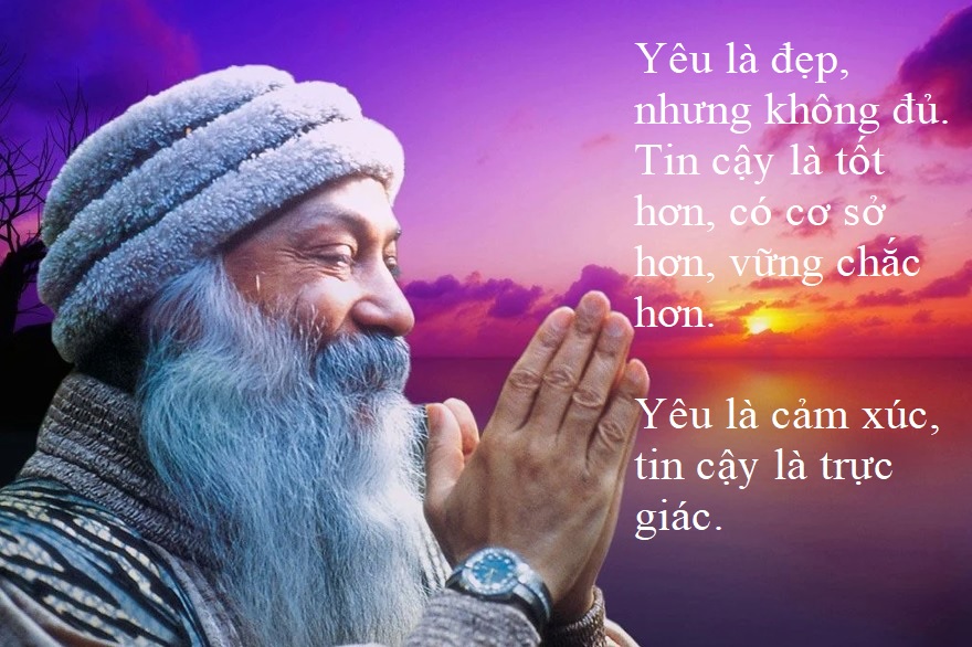 Cảm xúc liên tục thay đổi mọi khoảnh khắc – chúng là một luồng; bạn không thể dựa vào chúng – nhưng tin cậy có thể trở thành nền tảng lớn. Yêu giúp bạn đạt tới chỗ mà tin cậy là có thể. Không có yêu, tin cậy là không thể được. Yêu gần như chiếc cầu mà có thể đổ sập bất kì khoảnh khắc nào nhưng dầu vậy nó là chiếc cầu. Nếu bạn dùng nó, nó có thể đem bạn tới tin cậy; không có nó, bạn không thể đạt tới tin cậy một cách trực tiếp. Cho nên yêu là cần thiết, nhưng yêu lên bản thân nó là không đủ. Việc dùng của nó như phương tiện; mục đích là tin cậy.