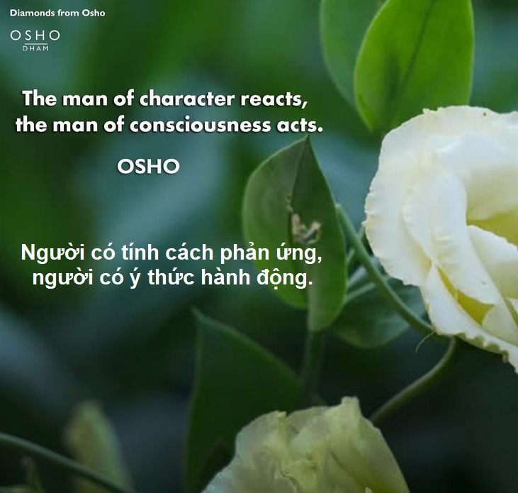 Khác biệt gì giữa tính cách và ý thức? Khi tôi nói phật không có tính cách, cố hiểu điều đó đi. Phật không thể có bất kì tính cách nào, không có nhu cầu. Tính cách ngụ ý bạn không tỉnh táo thế, bạn không thể được phép tự do toàn bộ để hiện hữu. Tính cách treo quanh bạn để buộc bạn làm điều đúng.
