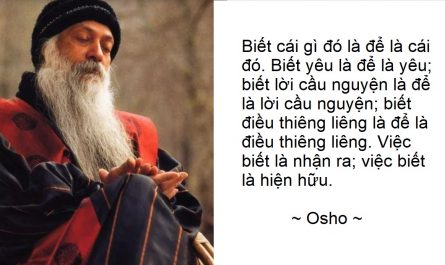 Không biết bản thân người ta là sự ngớ ngẩn lớn. Tôi hiện hữu, nhưng tôi không biết tôi là ai! Bạn khởi hành để biết bản thân bạn vì một mình lí do này: rằng bạn không biết bạn là ai, cho dù bạn hiện hữu. Để không có bất kì tư lợi nào khác. Không hi vọng đạt tới niềm vui, không hi vọng đạt tới tính bất tử hay tĩnh lặng hay thậm chí giải được huyền của cuộc sống. Không gắn điều kiện ràng buộc vào việc biết cái ngã. Người làm như vậy vẫn có mắt để vào việc đạt tới nào đó cho nên người đó sẽ đi lòng vòng bên ngoài bản thân mình. Người đó sẽ không đi vào bên trong. Người không có ham muốn nào còn lại, một mình người đó có thể đi vào bên trong. Do đó Lão Tử nói: “Chặn tính ích kỉ của ông. Cắt ham muốn của ông.”